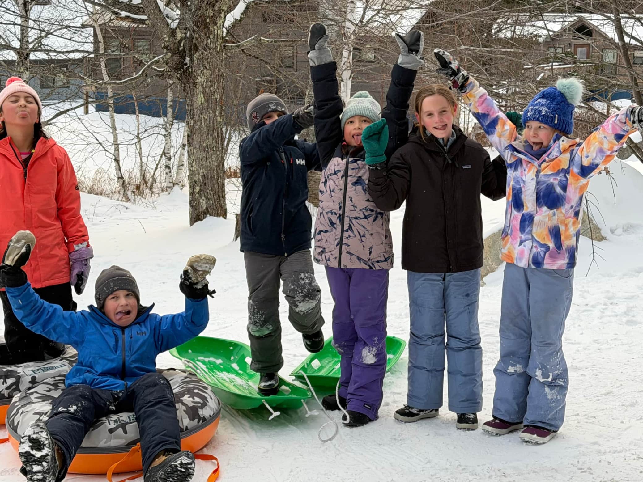 Warm up in your cozy tiny home, throw your wet clothes in the laundry, and have drinks by the fire pit while the kids sled and the dogs run around together. Stay with us for a week, a month, or all season long.
